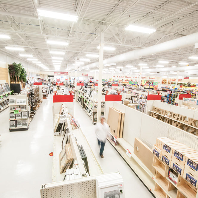 Located in Mount Vernon, Pat Catan’s is a family owned craft and art supply store. The store consists of a showroom, frame center, stockroom, and restrooms. Prior to EPCO’s intervention Pat Catan’s was relying upon outdated lighting including traditional industrial HID highbays, T-12 fluorescent, high pressure sodium and incandescent fixtures. Together these fixtures provided poor color rendering making it difficult for shoppers to accurately view the wide variety of products offered within the store.